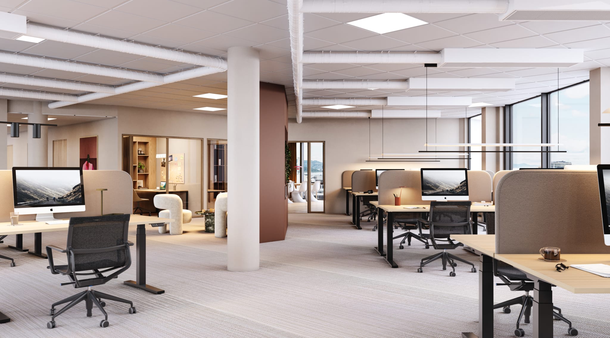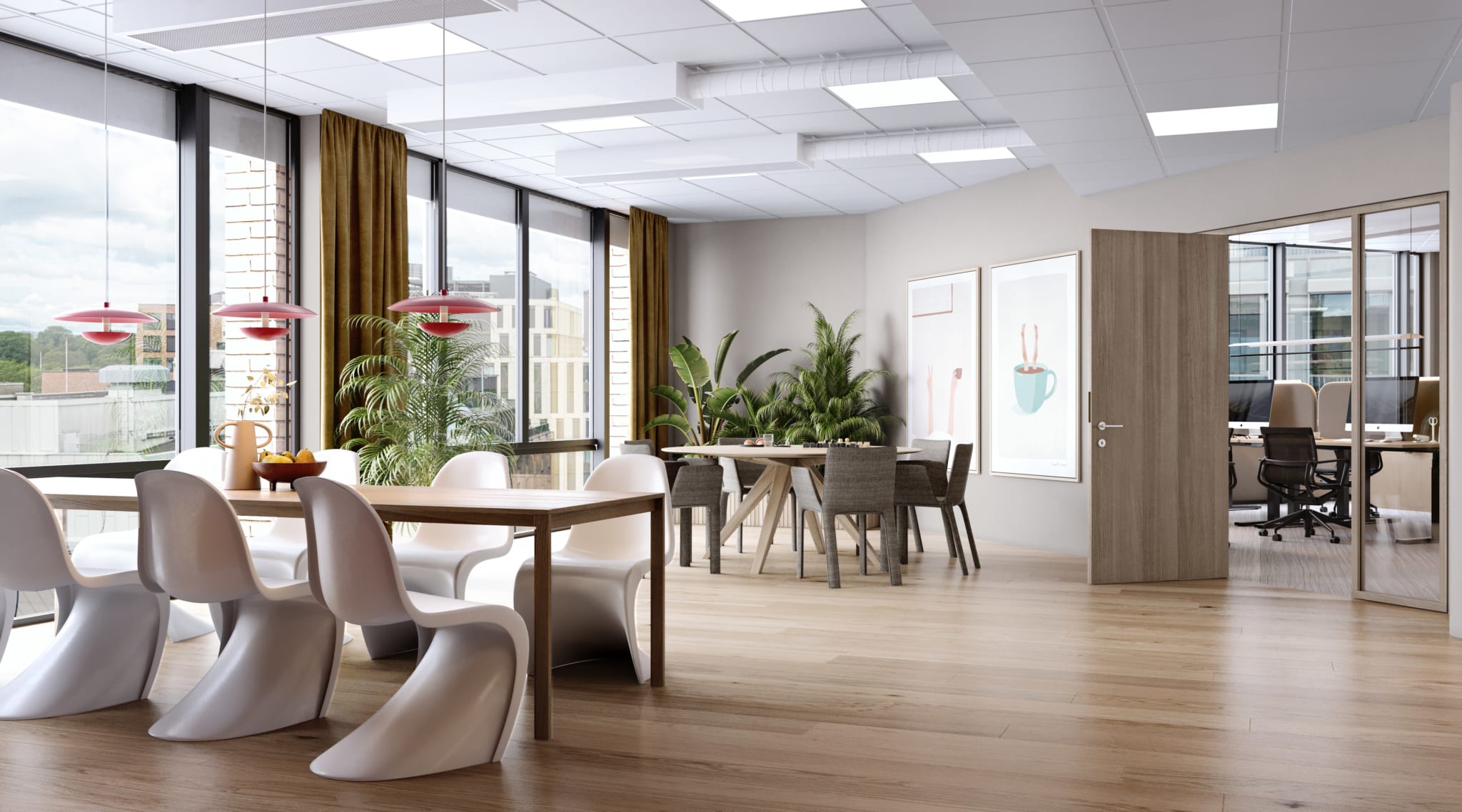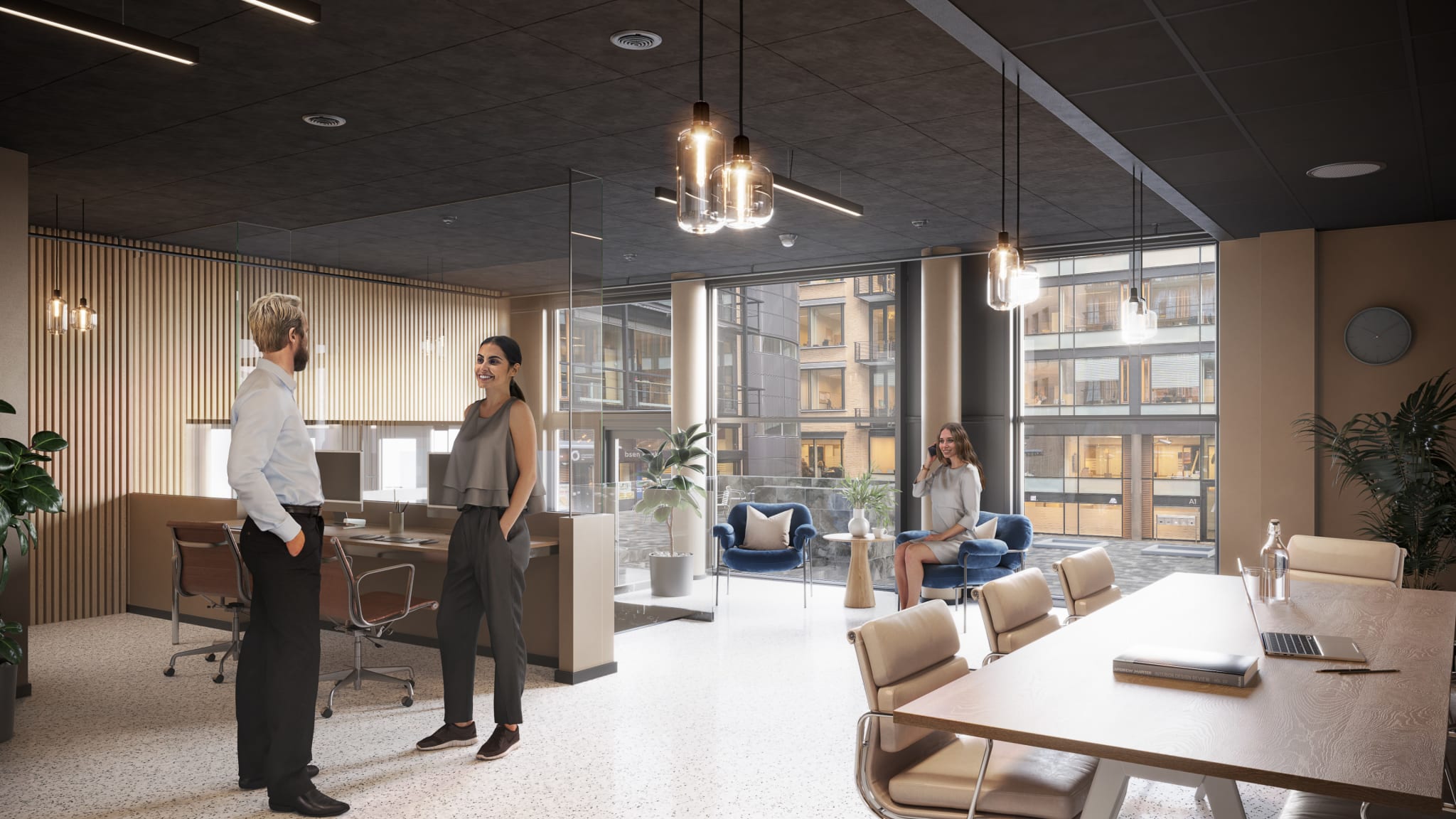 Alle våre lokaler kan skreddersys i samarbeid med leietaker. For å vise muligheten har vi laget en digital visning, med to ulike interiørstiler, for å vise hvordan lokalene kan tilpasses deg og din bedrift.