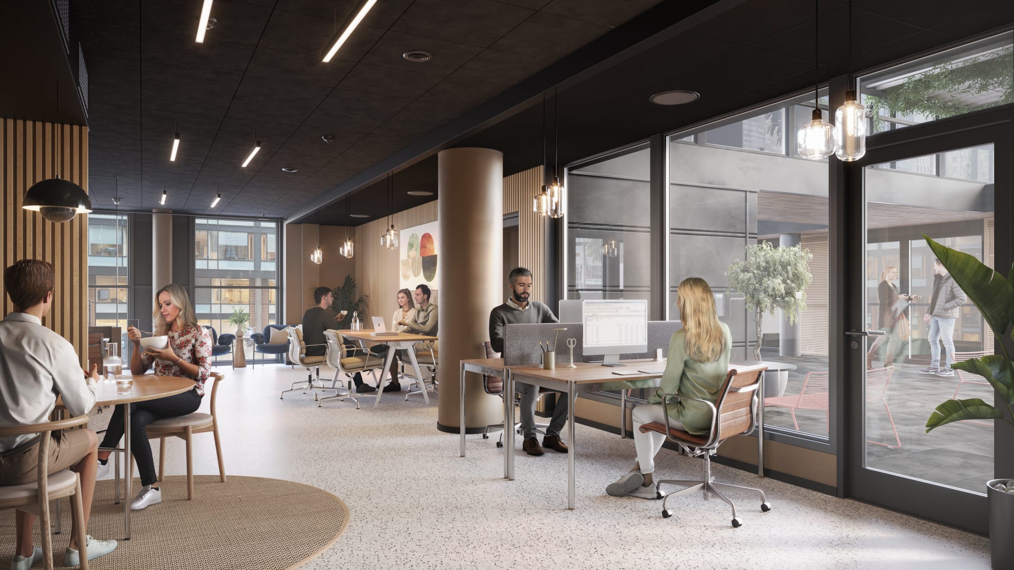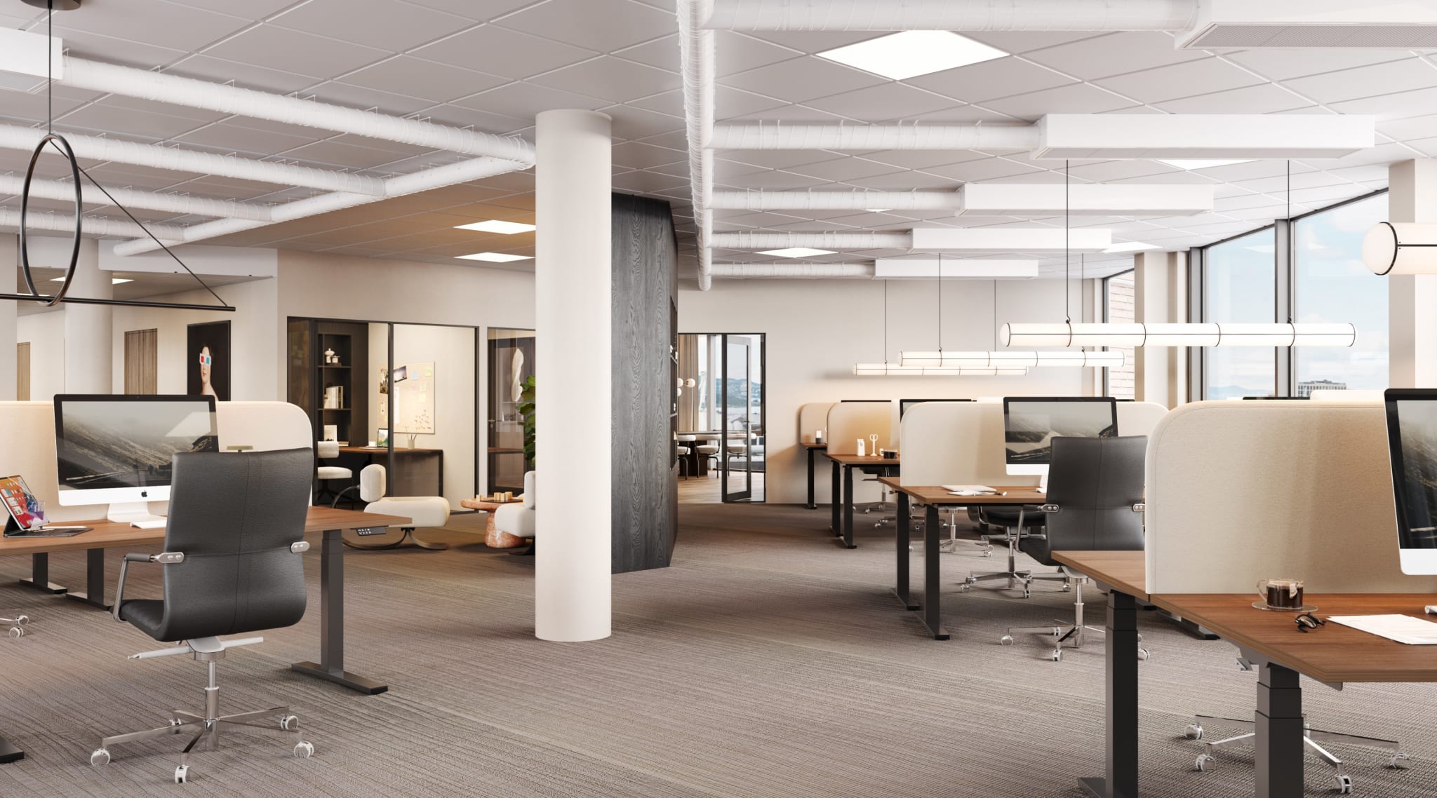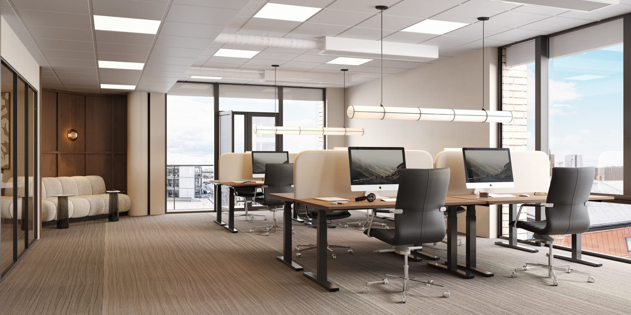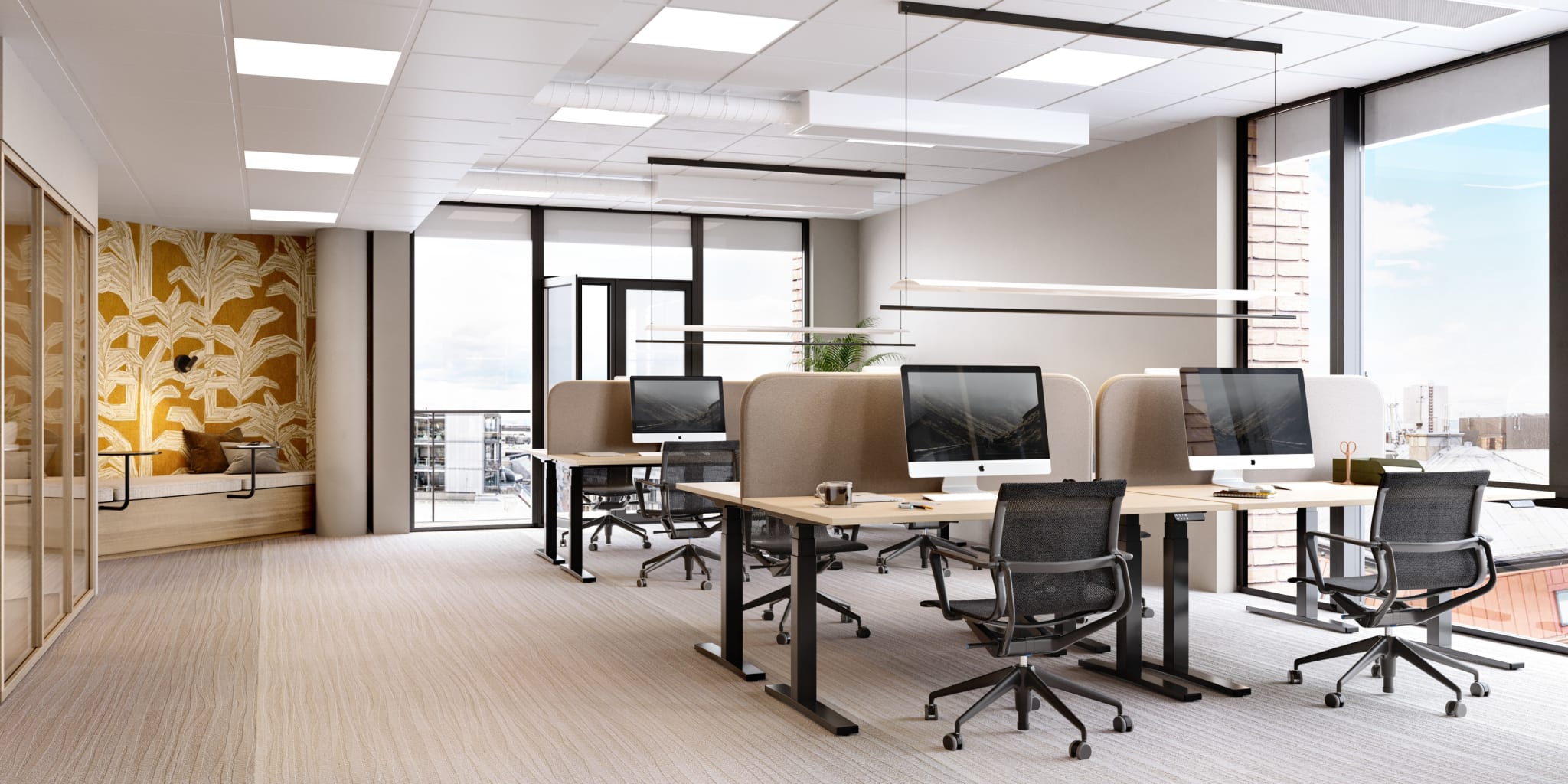 Alle våre lokaler kan skreddersys i samarbeid med leietaker. For å vise muligheten har vi laget en digital visning, med to ulike interiørstiler, for å vise hvordan lokalene kan tilpasses deg og din bedrift.