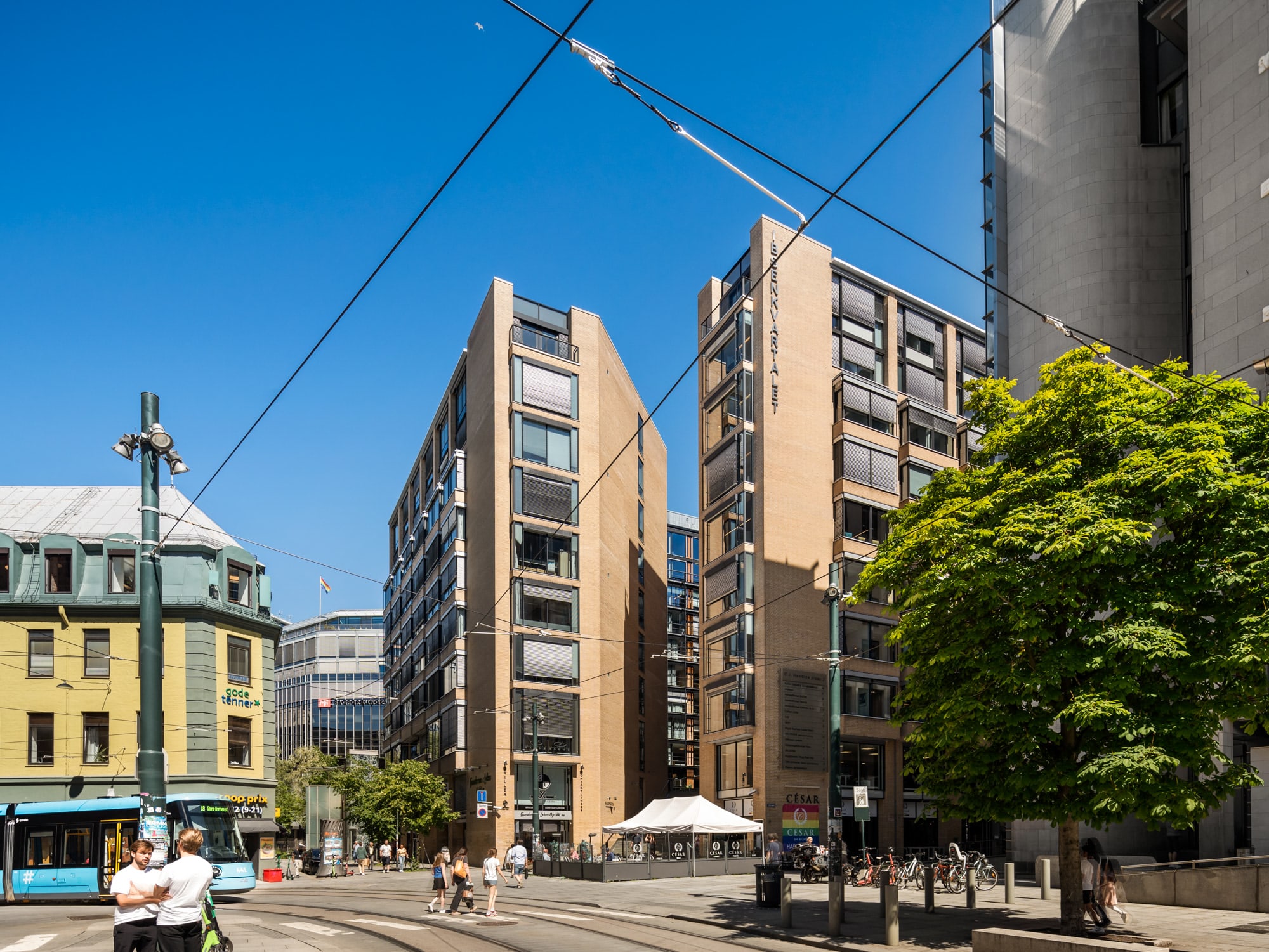 Den sentrale beliggenheten midt i byen skaper en enkel og effektiv hverdag, både på og utenfor jobb. Her får du raskt unnagjort dine gjøremål i lunsjen eller etter jobb. Med utallige restauranter innen rekkevidde ligger det godt til rette for en hyggelig lunsj eller middag med venner og kolleger.